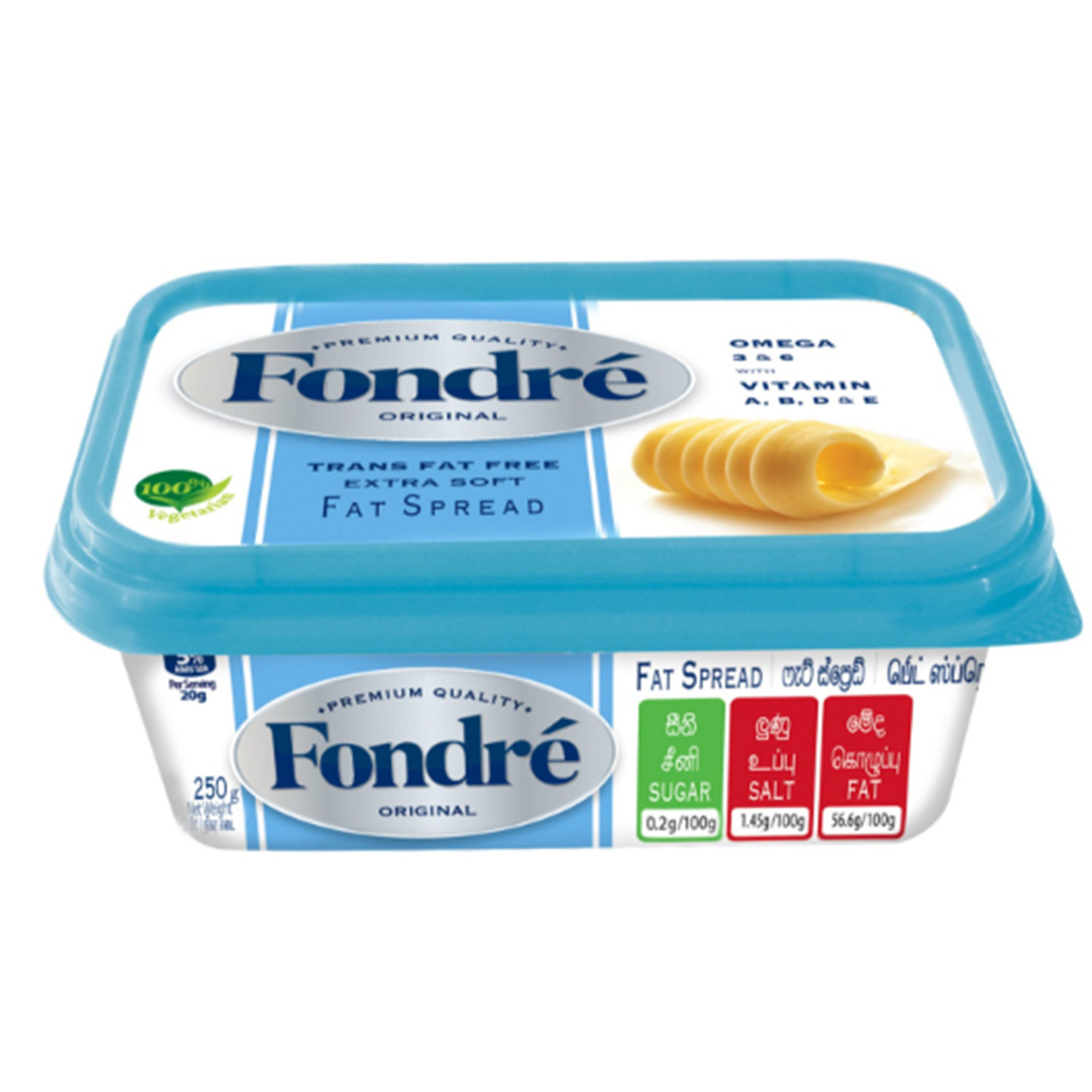 FONDRE is a delicious combination of carefully chosen plant-based oils which are cholesterol free, with naturally occurring omega 3 & 6 and a combination of vitamins (A, D & E).