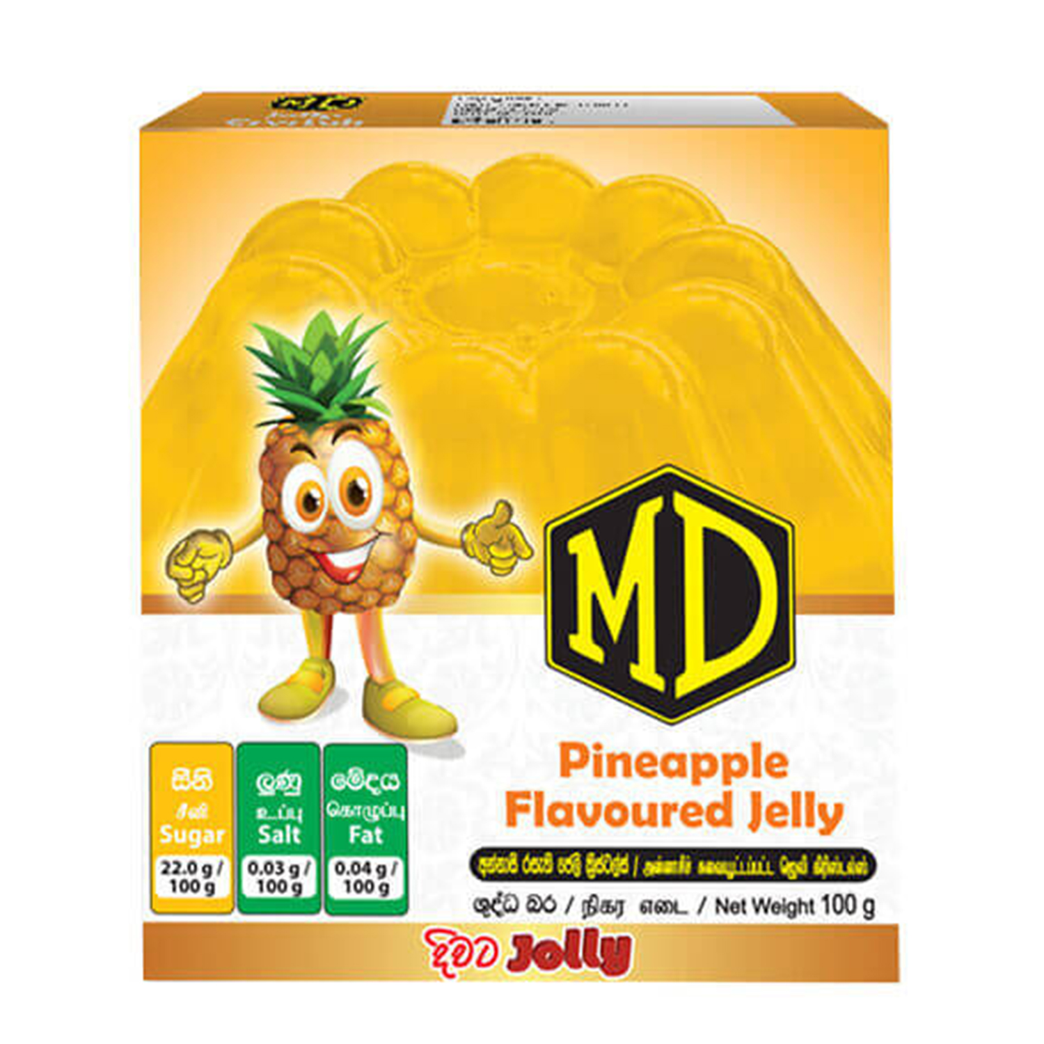 Ingredients: Sugar, Gelatine (E 441), Citric Acid (E 330), Tri Sodium Citrate (E 331), Nature Identical Pineapple Flavour & Permitted Colour (E 102)