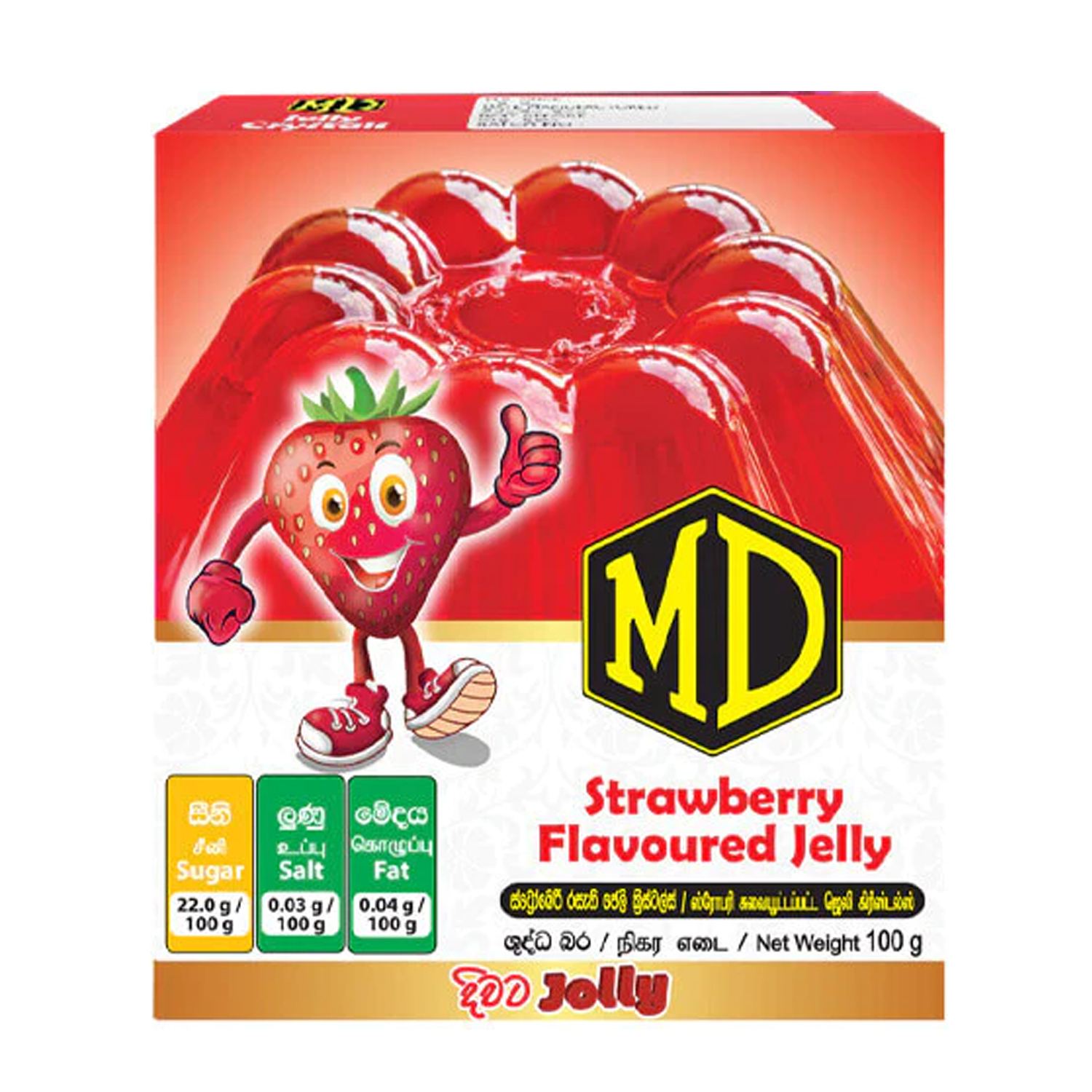 Ingredients: Sugar, Gelatine (E 441), Citric Acid (E 330), Tri Sodium Citrate (E 331), Nature Identical Strawberry Flavour & Permitted Colours (E 110, E 124)